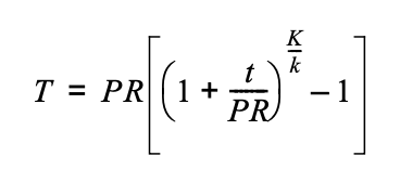 T = insulation thickness for material with conductivity K, inches.